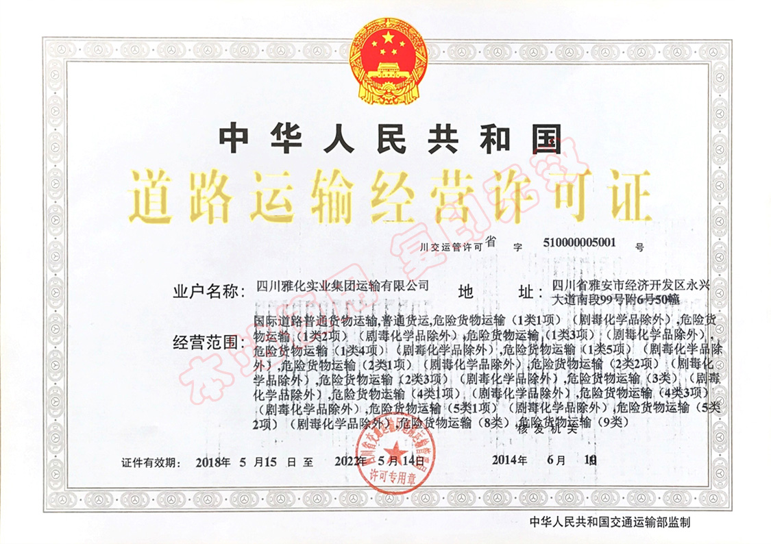 具有雅化集團的品牌優(yōu)勢,危險品運輸資證齊全,危險品運輸?shù)墓芾砗瓦\行經(jīng)驗豐富。